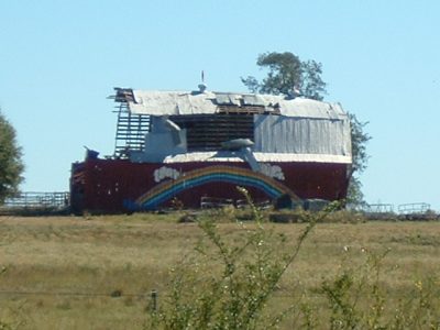 This picture is very symbolic for what has happened in Mississippi since Katrina roared ashore. This is what we always called “rainbow barn” on I-55 north of Brookhaven, and one of the “happy spots” we saw on a regular basis.